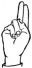 На ћирилици написано МИОМИРА ТОЧИЋ састоји се из 12 слова [?]. Исписано ћириличном једноручном азбуком за глувонеме:
